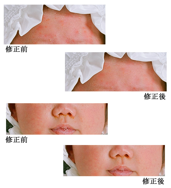 ●お宮参りに合わせて写真も撮影したいけど お肌の調子が悪い赤ちゃん 気になるかさぶた ひっかき傷等 おかあさんのご要望があれば修正させて頂いています